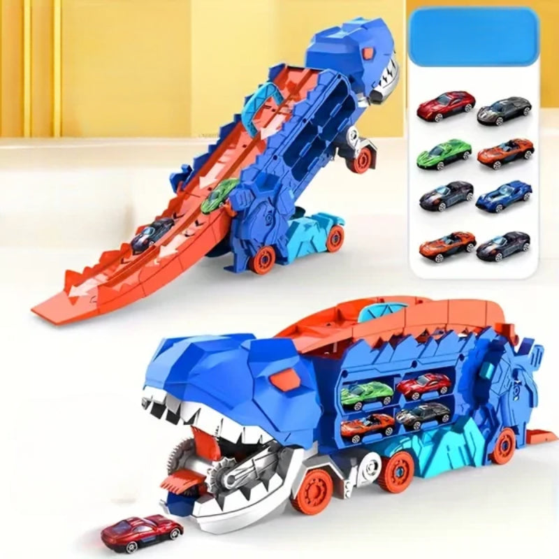 Dinosaur Shaped Transporter Truck With Race Track And Cars