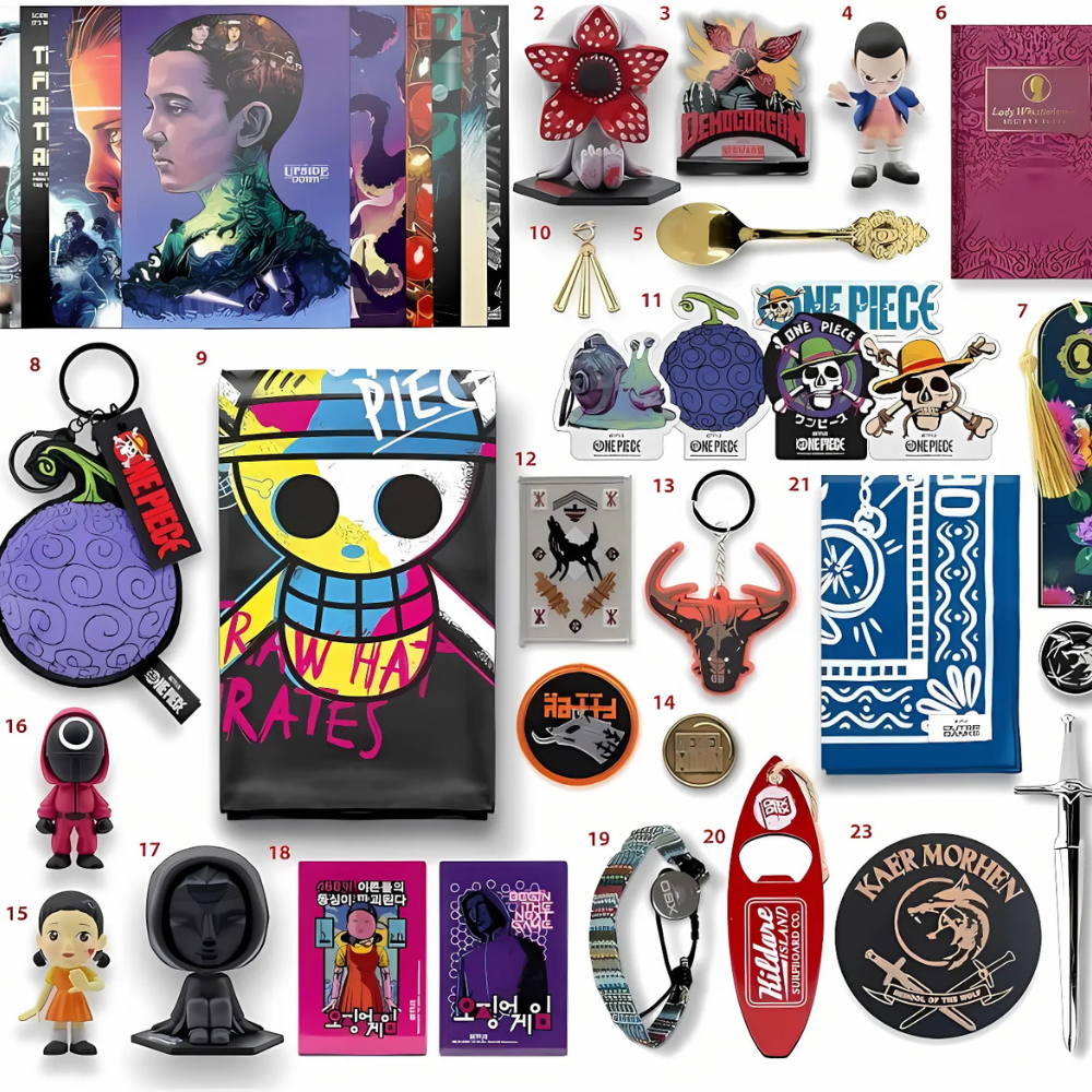 - Includes a diverse range of fan-favorite items from well shows, such as pins, and keychains.