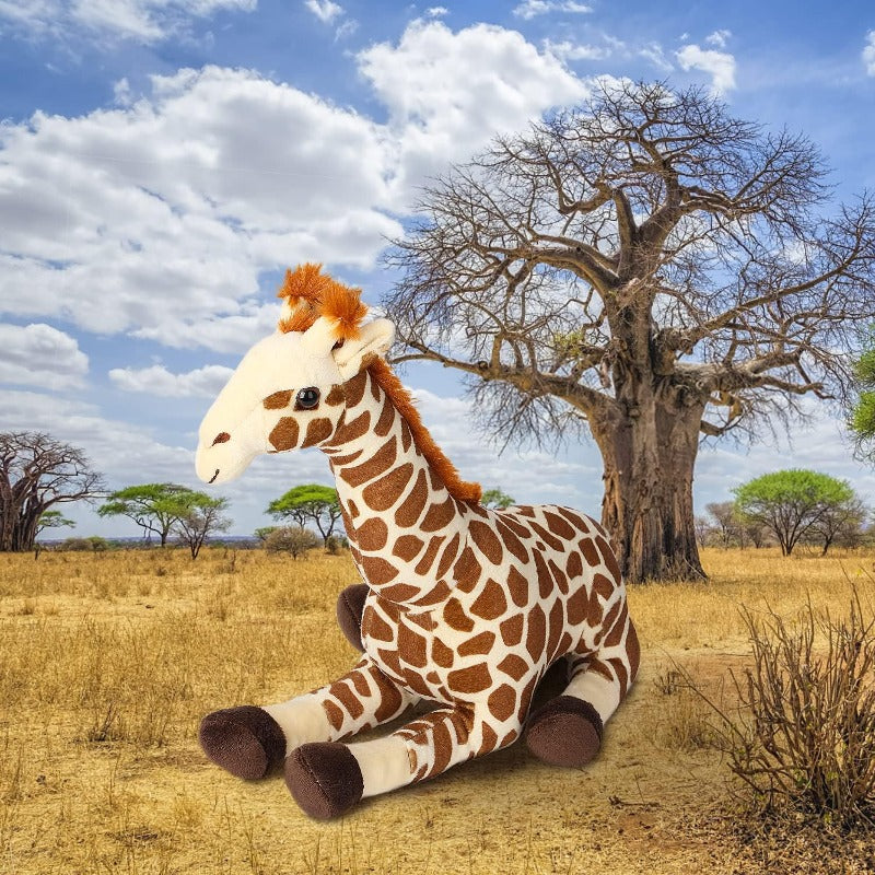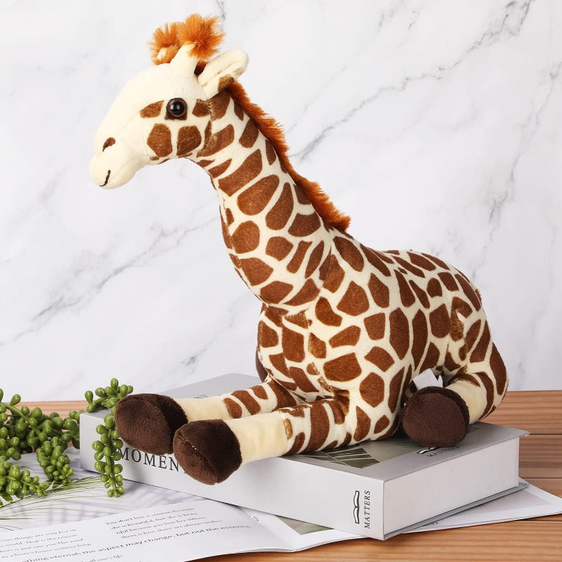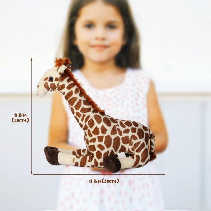 Perfect Size and Appearance: Measuring 12 inches (30 cm) in length, this giraffe is the ideal size for hugging and playing. Its lifelike appearance, covered in fur, is ready for cuddles and playtime adventures. Plus, it can sit on its own, adding to its playfulness.