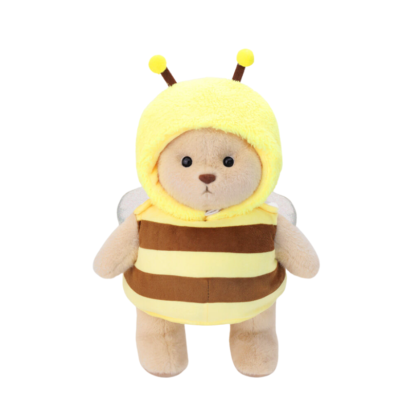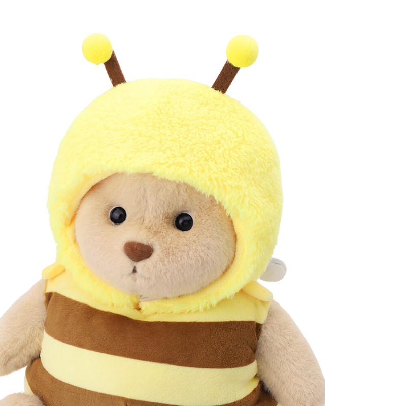 Introducing the Bumble Bee Teddy Bear Outfit, a stunning addition to any plush toy collection. This handmade teddy bear is dressed in an adorable bumblebee costume, perfect for imaginative play and display.