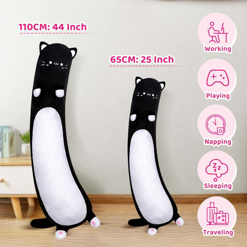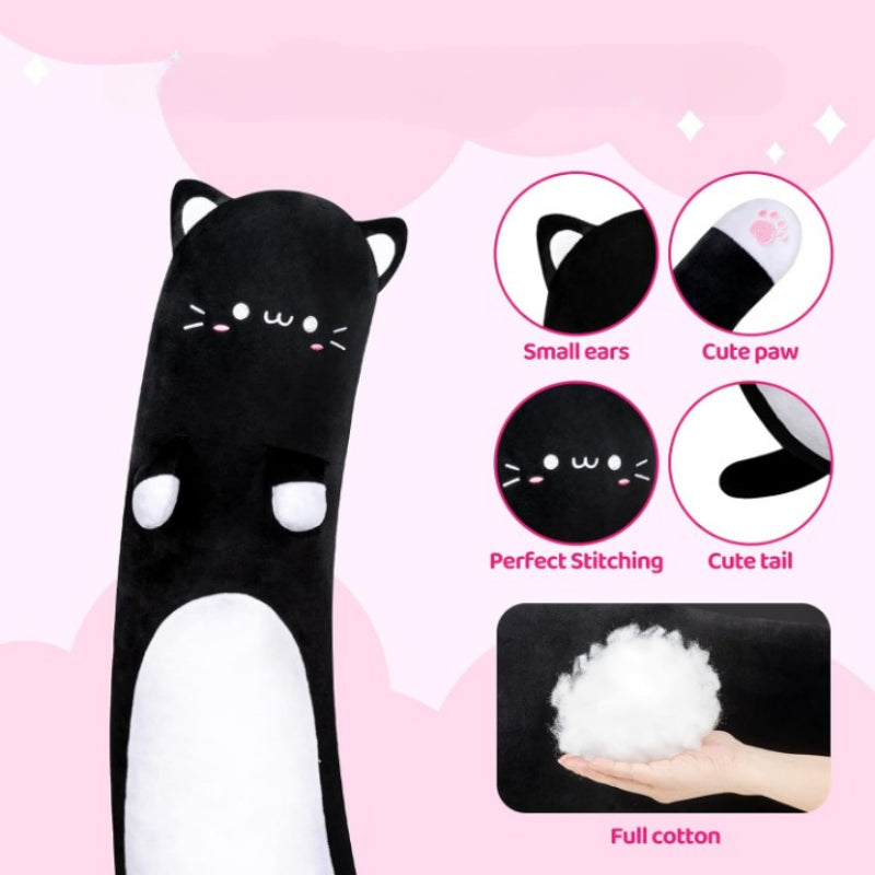 Embrace the whimsy and charm of our Long Cat Plush Toy Companion. This unique long cat plush toy features a sleek black and white design that simulates the look of a real cat in a fun, exaggerated form. Its impressively long body makes it perfect for decorating a bed, or simply being hugged. With its sweet look and playful paws, this plush cat is not just a toy but a statement piece that cat plush enthusiasts will adore.