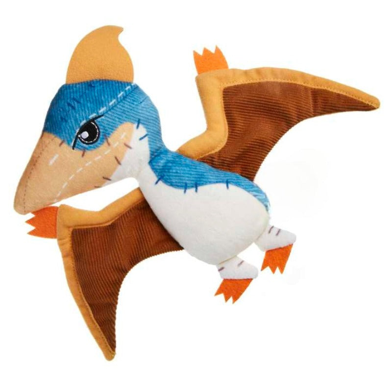 Get ready to have vivid dreams with this Pteranodon Dinosaur Plush Toy as your companion! Expertly crafted to bring a smile to dinosaur enthusiasts of all ages, this snuggly companion stands out with its vibrant blue and orange fabric wings that capture the imagination. Stitched with care, the playful patterns mimic the creature's natural textures, while its soft, huggable body makes it an ideal snuggle buddy.