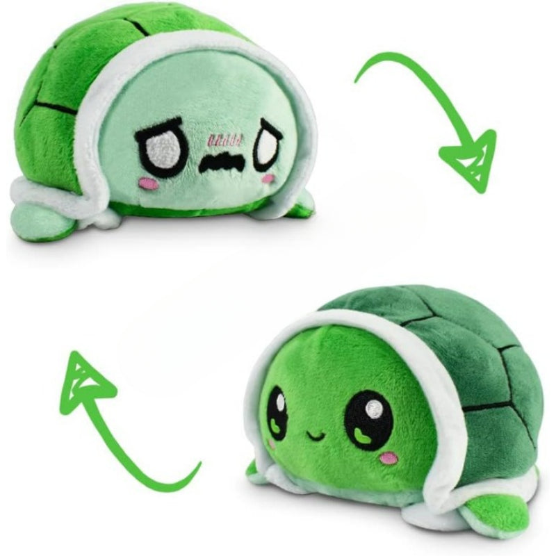 Discover the Reversible Turtle Stuffed Soft Toy – a plush companion that captures nature with its unique ability. This innovative toy features a bright green turtle with a cheerful expression on one side and its reversible side showing a different, more subdued expression. The plush is designed with detailed stitching to resemble a turtle's shell, and its soft, fabric limbs are perfect for interactive play. This reversible turtle is not just a toy but a conversation piece, offering a tangible way to express and share feelings with others.