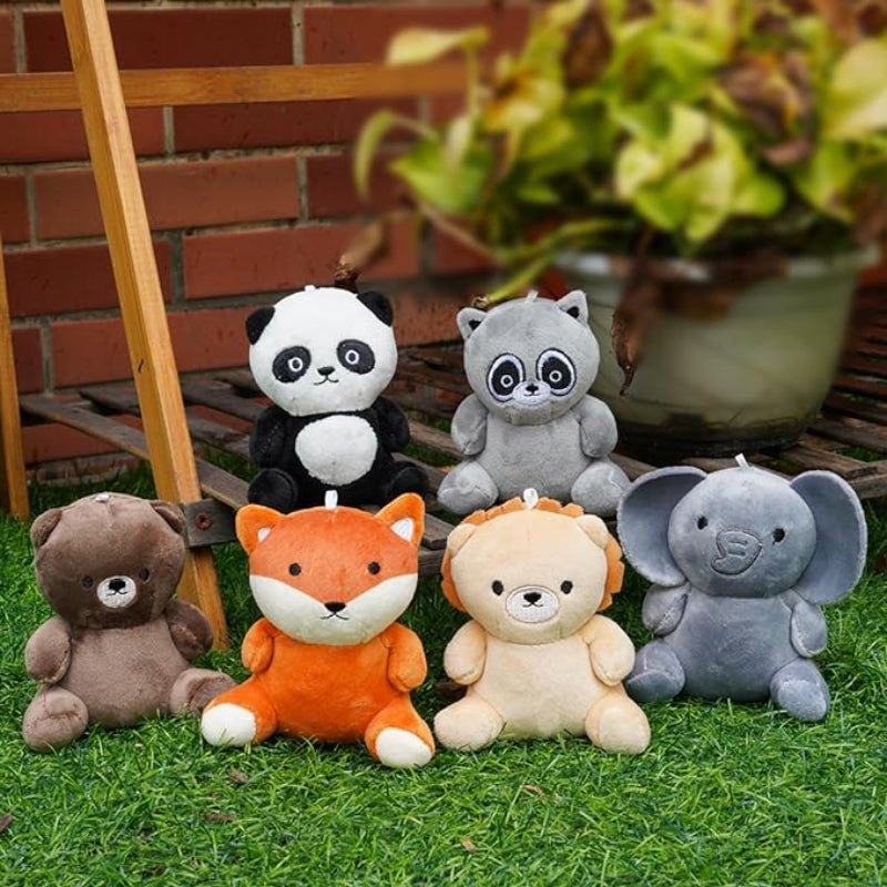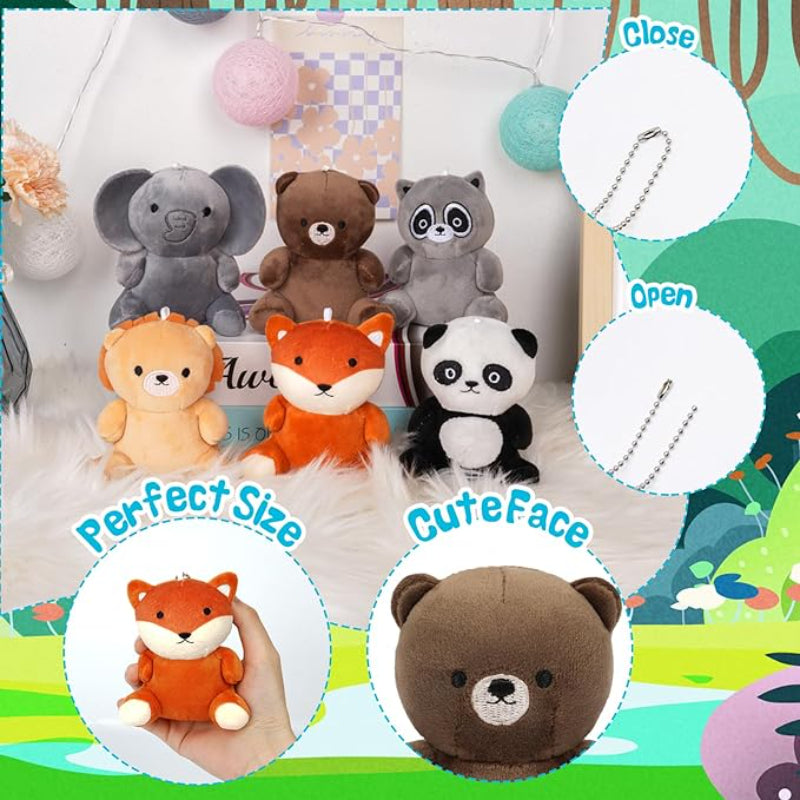 Set Of 6 Mini Plush Animal Keychain