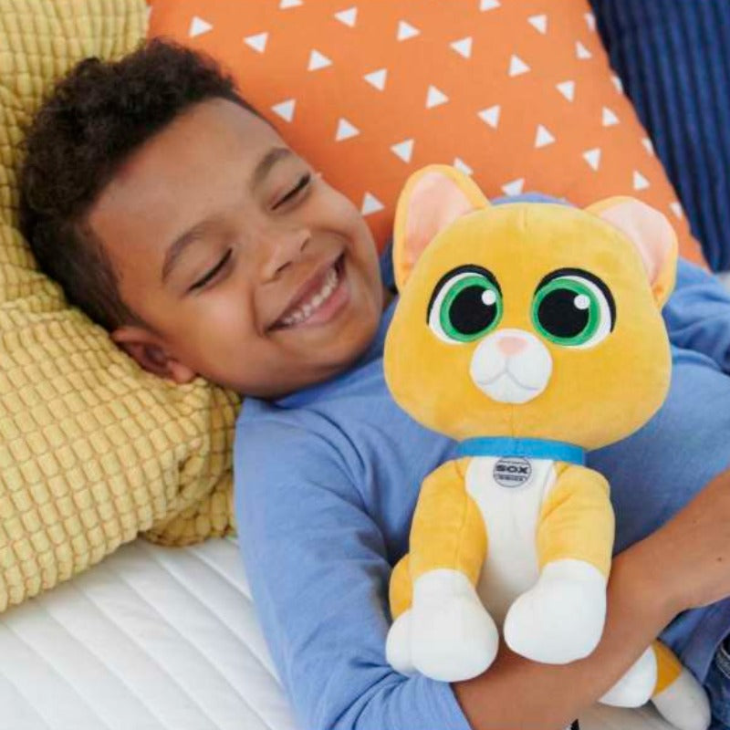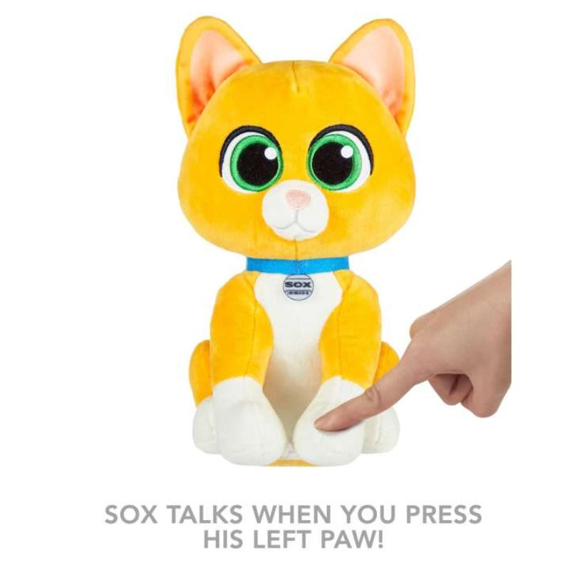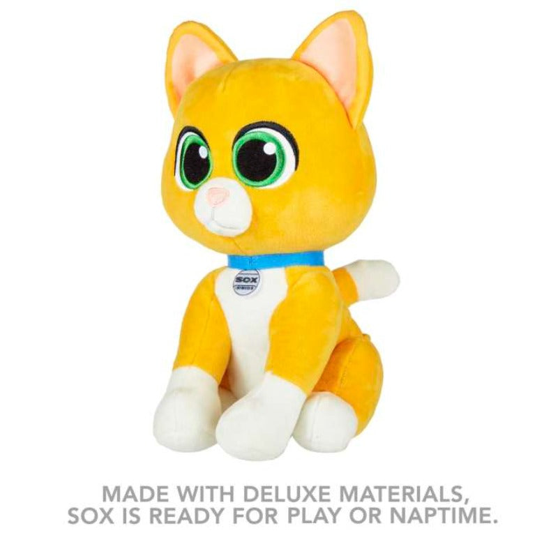 - This plush Sox toy includes a sound that's reminiscent of the movie, allowing you to relive all the excitement of the thrilling animated adventure. Simply give the left paw a gentle squeeze to activate the sound!